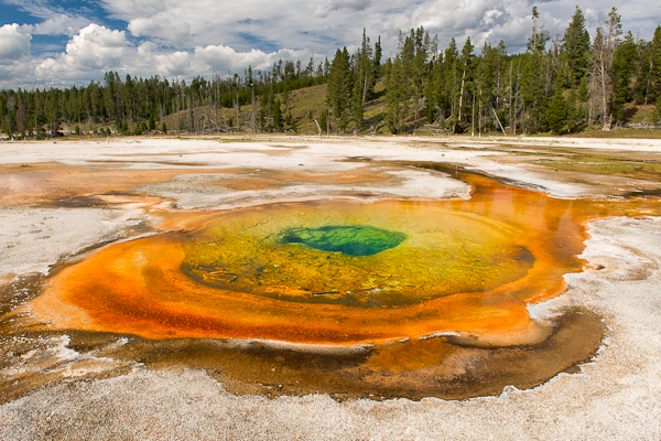 It’s a cool, autumn morning. I’ve often thought September is the best kept secret in Virginia – the days are still warm, but not humid, with clear skies and plenty of fluffy, cumulus clouds. I recall cross country trips when we camped along the way, seeing sites that remain with me almost thirty years later. So I was drawn to this amazing photo by my new friend Glenn, of a thermal pool in Yellowstone National Park. Everyone stops to see Old Faithful, dazzled by the geyser’s 100 foot plume. Folks stand around and chat, wait for the next burst of boiling water, then wander off, soon to be replaced by another crowd, and another. Few stop to view the rest of the Upper Geyser Basin, full of mesmerizing hot springs. While Old Faithful spews out its water under pressure, these pools quietly dazzle the eye and awaken the soul. A minute algae creates these vibrant colors, an organism that thrives at temperatures we could not begin to tolerate. It seems to me our faith can be a lot like these geysers and hot springs. In the beginning, we seek out mountain top experiences, returning home after a retreat full of energy and enthusiasm. We hang onto that sense of the beyond for as long as we can, but real life has a way of wearing us down. In time, we learn to cultivate and nurture our faith, attaining a more abiding sense of the Almighty in the every day. We learn to dig deeper, to delve into the recesses of our hearts and souls. We recognize our own limitations, and learn to lean on God, understanding that through our weakness we are made strong. Take time today to look beyond the drab colors of your daily routine, to open your heart and soul to the vibrant colors drawn by the Author of Creation. Allow the Alpha and Omega to guide you, to guard you, and yes, to heal you. Embrace the mystery of the beyond, and accept knowledge that is beyond facts, love that is beyond words. And remember, the Holy of Holies is crafting a beauty greater than you ever imagined possible, even when you’re up to your neck in boiling water. Text by Connie Chintall ©2012, Photo entitled ‘Chromatic Pool’ by Glenn Nagel ©2012, used with her permission. To see more of Glenn’s work, go to http://www.nagelphotography.com/