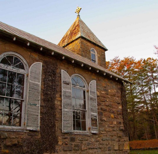 The days are getting shorter and the shadows are getting longer. The leaves are beginning to turn, and to fall. Soon our yard will be carpeted with leaves. So I was drawn to this amazing photo of a stone church by my friend Carole. I’m not sure if the leaves are turning, or if the sun is creating the orange tint at the top of the tree line. The vines are far past their prime, yet still cling to the stones. At first glance, this church seems to have lost its vitality. The roof is full of rust, the paint is chipped and fading. Yet in the windows, we still can see a reflection of abundant life. While people may have walked away, God abides in this holy place. My grandmother would say this place is ‘prayed up’, that the prayers of so many have soaked into the ground and even permeated the stones. Where others would see a disused building, she would see the prayers of many who have gone before us, and remain faithful, if not in this life then in the next. We pray to the Infinite and All Powerful, to a God that is, and was, and always will be. Even when we feel lost, when we feel as if our lives are simply drifting along, we remain firmly in the palm of God’s hand, enfolded in steadfast love, without beginning or end. Take time today to shake off the rust in your life, to let go of the withered vines, to cling fast to the stones that abide. Let prayer soak through you, allowing the Author of Creation to show you the path ahead. Trust that new life lies beneath the dreariness of this world, and claim the promise of resurrection life. Start here and now, with one step at a time, trusting that each day is an invitation to begin again. And always remember, we are far from alone, for we have God to lean on, full of strength and love. Text by Connie Chintall ©2012, Photo by Carole Buckwalter ©2011, used with her permission. To see more of Carole’s work, go to http://www.buckwalterphotography.com/