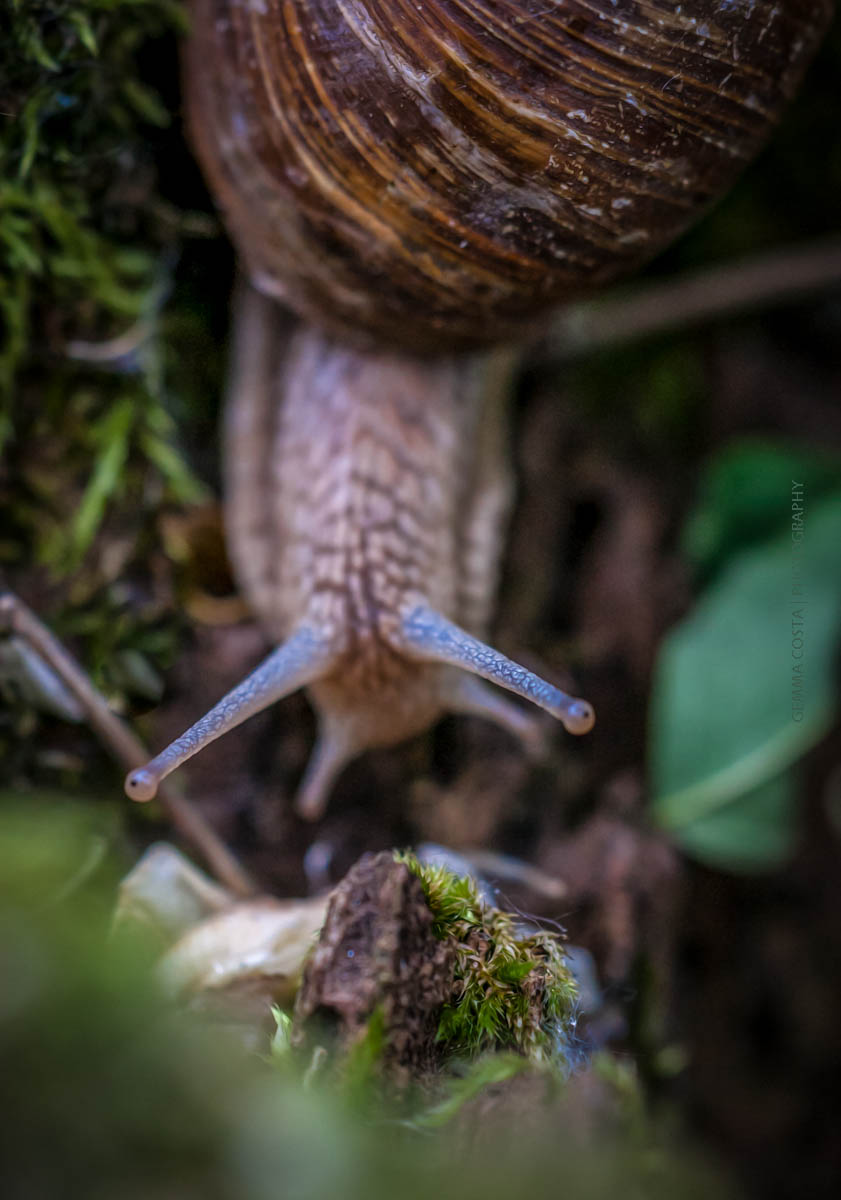 The grey skies and bleak mornings sap my energy this time of year. I even stop bothering with a ‘to do’ list, since I can’t seem to work off more than I add each day. So I was drawn to this beautiful photo by my friend Gemma of a curious snail. I love how the eye stalks are in focus, while the rest of the snail and the background are a bit blurred. The snail finds its way mostly with the shorter tentacles, reaching out to test the way ahead before proceeding, while the eyes offer a view from higher up. I first really looked at snails when I was a young officer stationed in Los Angeles. I was living in a small duplex, with sorely neglected roses all along the house. As I began to trim them back, I found more and more snails. I disturbed their habitat so they invaded mine. I couldn’t park in the driveway without running over snails, or walk across the porch without stepping on snails. The neighbors told me to put down snail bait to get rid of them, but somehow that just seemed all wrong. In fact, a lot was wrong with my life then, as my first marriage was falling apart at the seams. Sometimes I would sit on the porch praying for a way out, a way to heal what was broken, or I would be simply lost in sorrow and dismay. Then I would look up and see the snail that seemed to be going nowhere had actually made progress. It may sound weird, but those snails gave me hope, that no matter what happened, God had a plan. That plan might take a lot longer than I hoped it would, but there was a plan for me, a plan created by an Almighty and All Merciful God. Make time today to really look at what God places in your path. Let go of your usual expectations, resist the temptation to judge, and simply soak in the reminder that God is in charge. Become lost in the beauty of nature, or find the beauty in what others find a nuisance. Trust the Author of Creation who was, and is, and always will be. And remember, you can get there if a snail can, as long as you look up to find the way ahead. Text by Connie Chintall ©2012, Photo by Gemma Costa ©2012