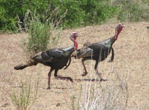 Thunder storms cycled through the area this weekend, with the weather alternating between drenching rain and sunny skies. The rain poured down so fast and furious I found myself thinking of Noah’s ark. So I was drawn to this photo of two turkeys, taken by a friend of a friend, Rod Mayo. I am always astonished by how farming has altered the natural shape of the turkey, and how quickly wild turkeys can move. I imagine the animals arriving at the ark, two by two, to join Noah. I remember how I loved this Bible story as a child. The paired animals offer a comforting image, an understanding that we are never alone. Each animal had a companion to join him on this journey into the unknown. And Noah looked a lot like God, with the long beard and flowing robes. It was the first step toward understanding the Christian concept of abiding love. Yet this comforting image was offered along with fearful destruction. So I ponder this story now at a different level. The ground may have been just as parched as in this photo, because before the ark there was no rain, only dew in the mornings. How long would it have to pour rain before the whole earth was flooded? How would you react to Noah’s warnings that water would fall from the sky, so much water that the entire earth would be flooded? There must have been many warnings, many opportunities to join Noah on the ark. Yet other than his family, only the creatures of the earth entered the ark. Take time today to consider what it means to walk with one another on this journey of life. Open your hearts and minds to what others have to say. Deeply listen to their point of view, and seek to learn a greater truth than you thought possible. And always remember, that even in the midst of horrible destruction, you are never alone. Photo by Rod Mayo