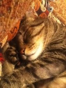 The warmer weather has returned, to remind us summer is not yet over. Those prone to allergies are having a tough time, as the weather can’t seem to make up its mind. For those suffering from migraines, this is a day to simply roll over and pull the covers up over your head. So I was drawn to this photo of Seamus, taken by my young friend Kellen. Seamus is helping Kellen finish her homework, sort of. Mostly, Seamus is abiding with Kellen. The word abide is often misunderstood. The verb abide is equated with the noun abode, meaning your place of residence. To abide means more than to live somewhere. It’s like the difference between a house and a home. To abide means to remain steadfast, to conform, to submit. Abiding love is never ending love, unconditional love, love that submits even when the cost of that love is beyond anything you can imagine. I often use images in intercessory prayer. When someone I care for is undergoing immense challenges, or in great distress, I often picture them like Seamus, as a kitten curled up in the lap of God. Like Seamus caught up in the folds of this beautiful fabric, I picture my loved one enfolded in the abiding love of the Almighty. Too often we think the answer is to be strong, to struggle and fight. Yet that path limits us to a human solution. When faced with overwhelming odds, we must submit to a higher power, to the Author of Creation. No matter what we face, it is but a small thing to the same God who defeated sin and death on the cross. Take time today to rest in the abiding love of God. Let go of what burdens your heart, offering a simple prayer for yourself or for another. And like Seamus, let’s stop to curl up in the lap of God – there is plenty of room for us all. Photo by Kellen Levinson